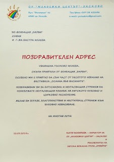 Поздравителни адреси – 10-ти юбилеен фестивал „Осанна във висините“